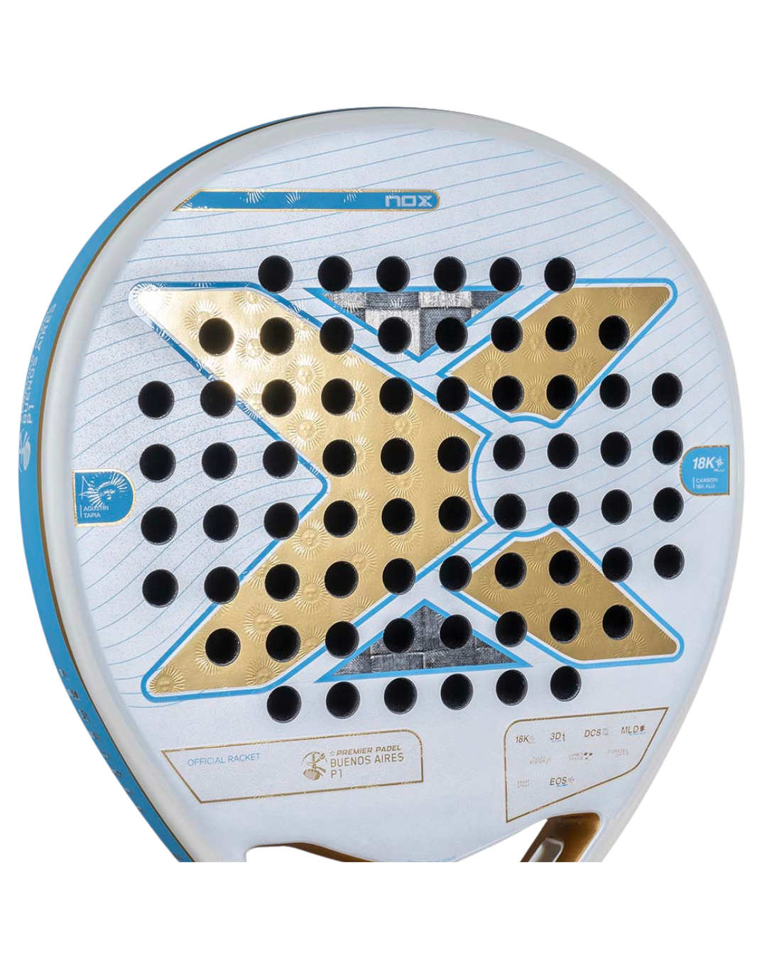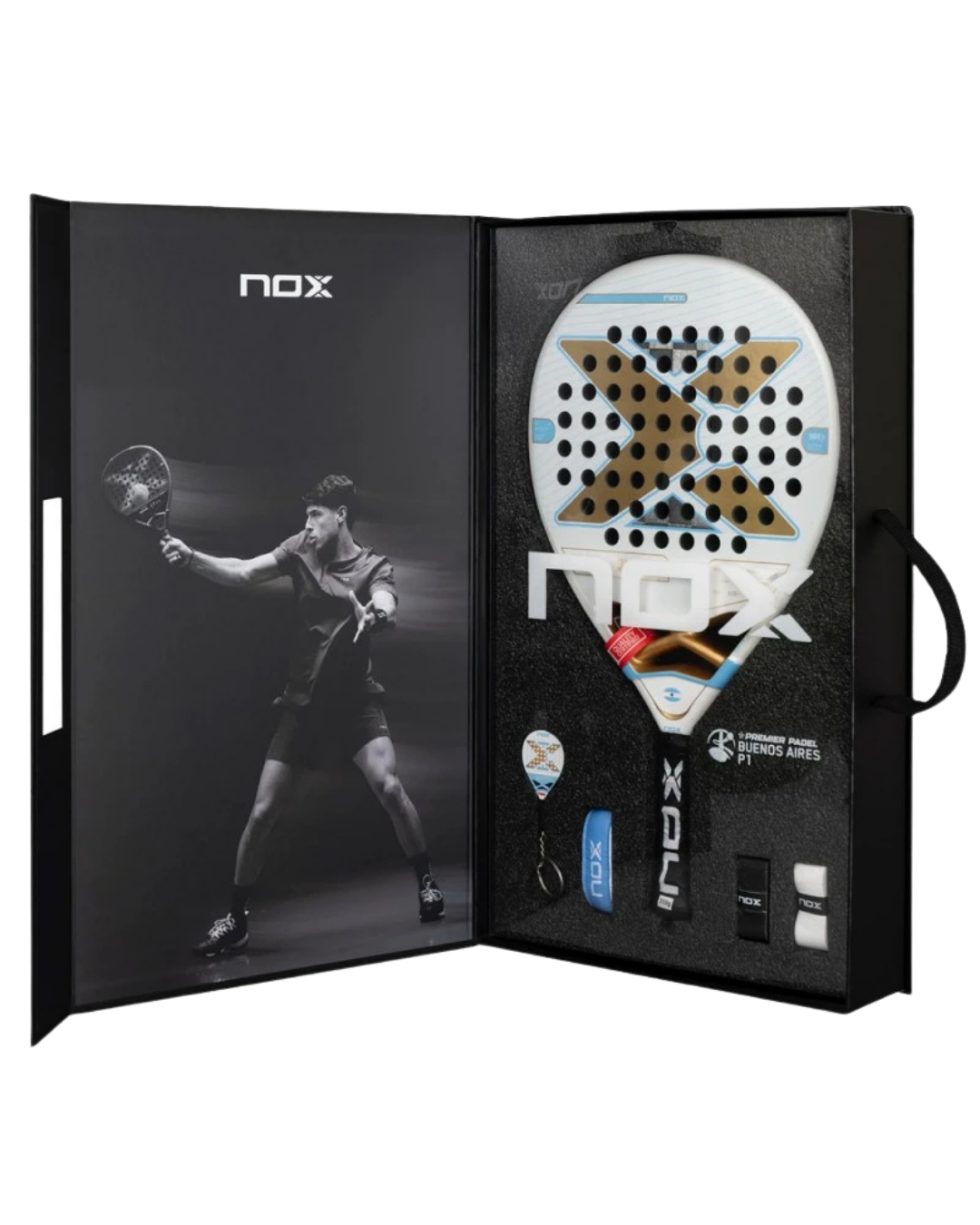 Ventaja: Edición oficial del Buenos Aires Premier Padel P1 con tacto estable ante cambios de temperatura, mejor manejabilidad (EOS Flap) y agarre mejorado (Custom Grip/Smartstrap).