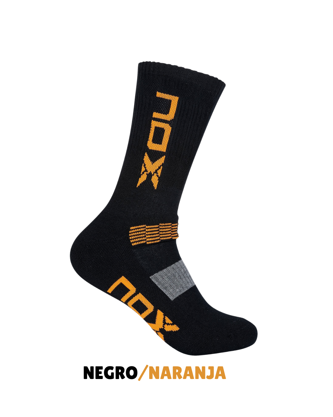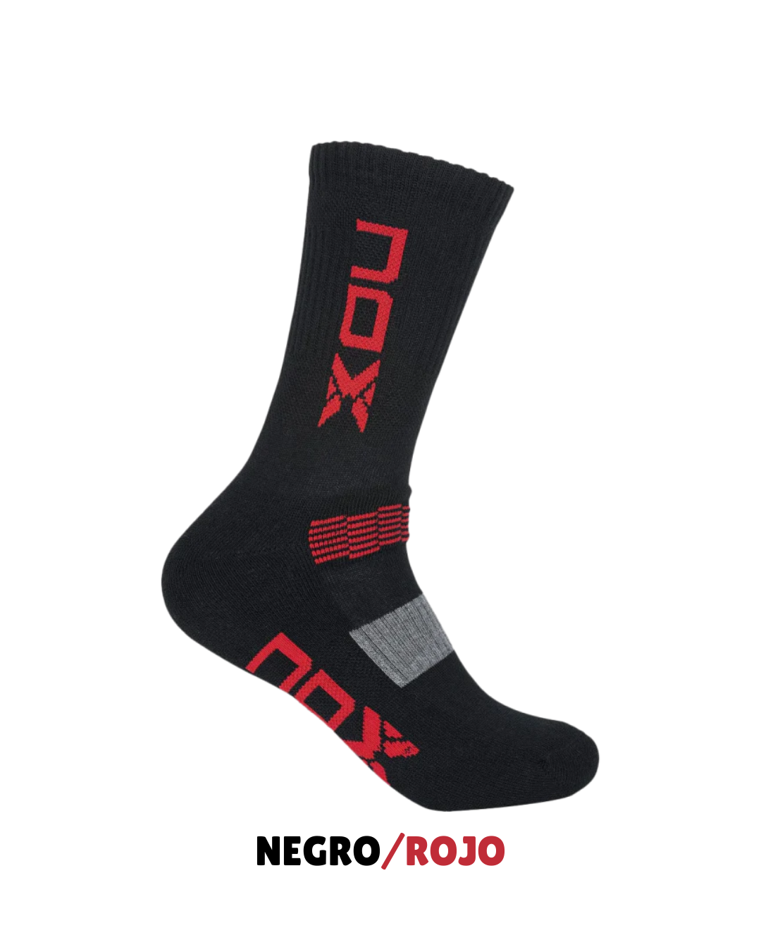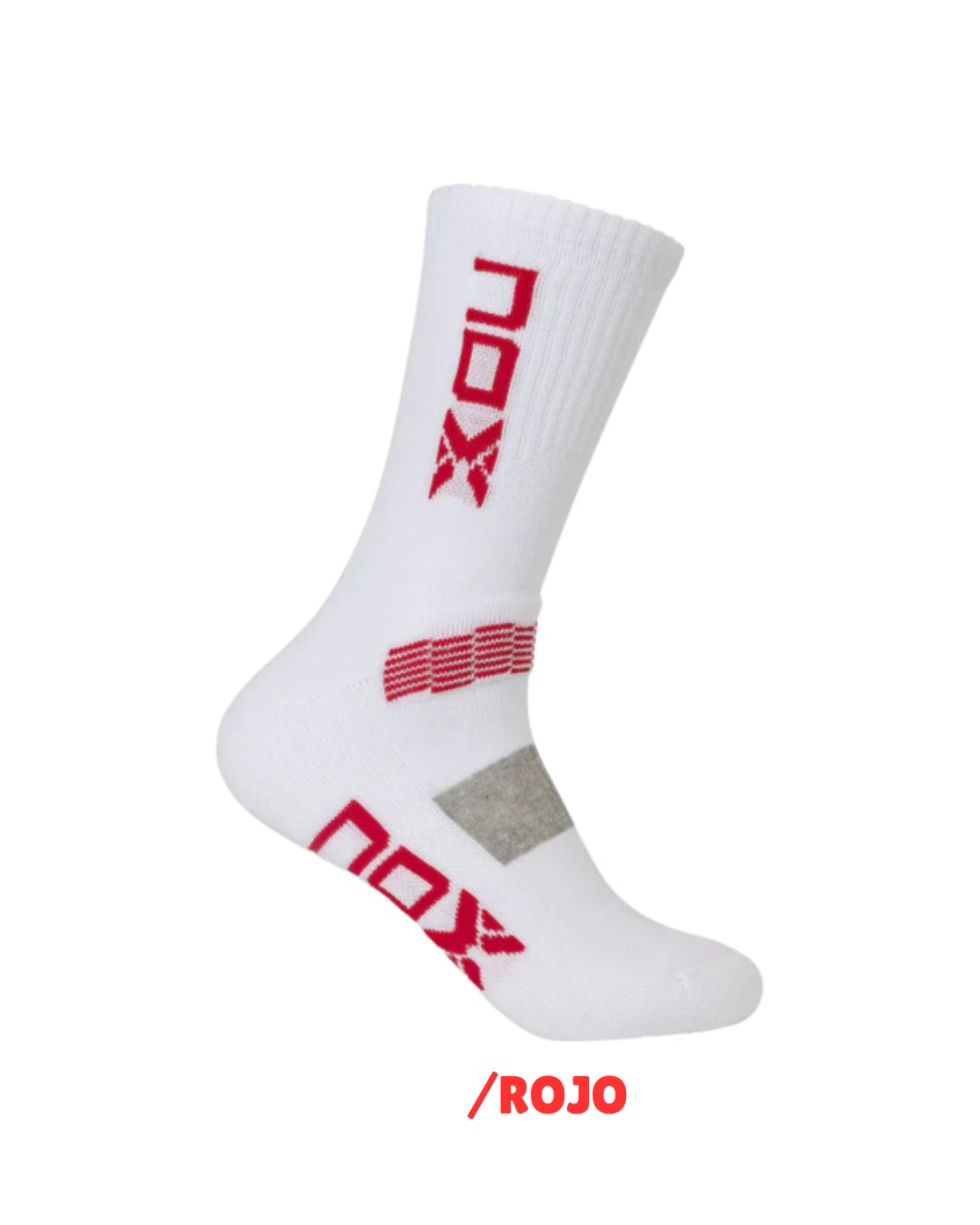 Comodidad y resistencia en cada partido. Los calcetines técnicos de pádel Nox largos en color blanco con letras grises ofrecen ajuste perfecto, transpirabilidad y durabilidad, ideales para jugadores habituales con alta carga de entrenamientos y partidos.