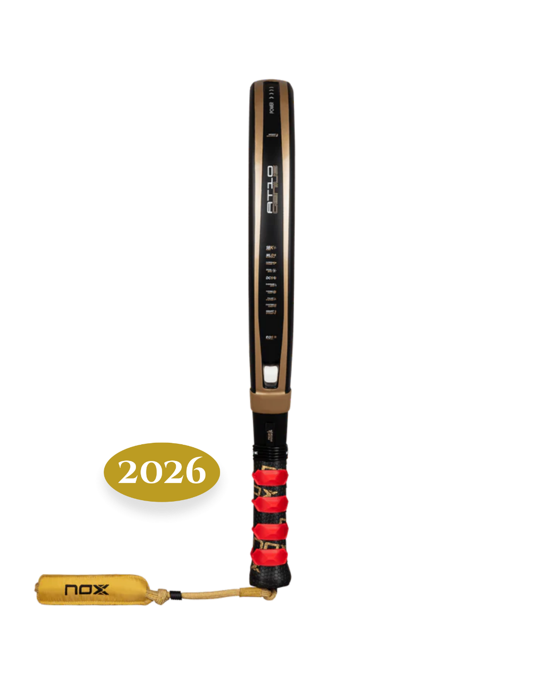 Domina cada punto con la NOX AT10 Genius 18K Alum 2026, creada junto a Agustín Tapia para quienes buscan potencia sin perder precisión. Su carbono 18K Alum XTREM aporta rigidez y velocidad en el golpeo, complementado por el núcleo MLD Black EVA que ofrece buena salida de bola con control. La forma de lágrima y su balance ligeramente elevado la hacen ideal para una variedad de estilos ofensivos, y además cuenta con la tecnología de pesos ajustables tipo sticker, que permite adaptar la distribución del peso con facilidad y ajustar la pala a tus necesidades en la pista.